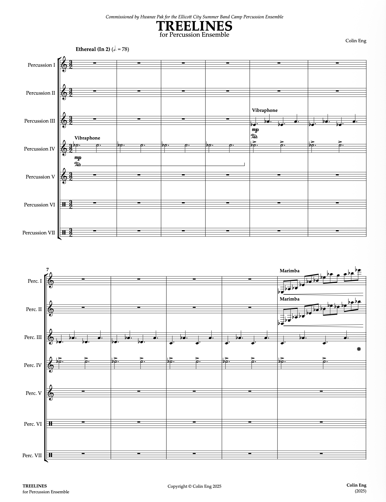 This piece was commissioned by Hwanee Pak for the Ellicott City Summer Band Camp Percussion Ensemble.
