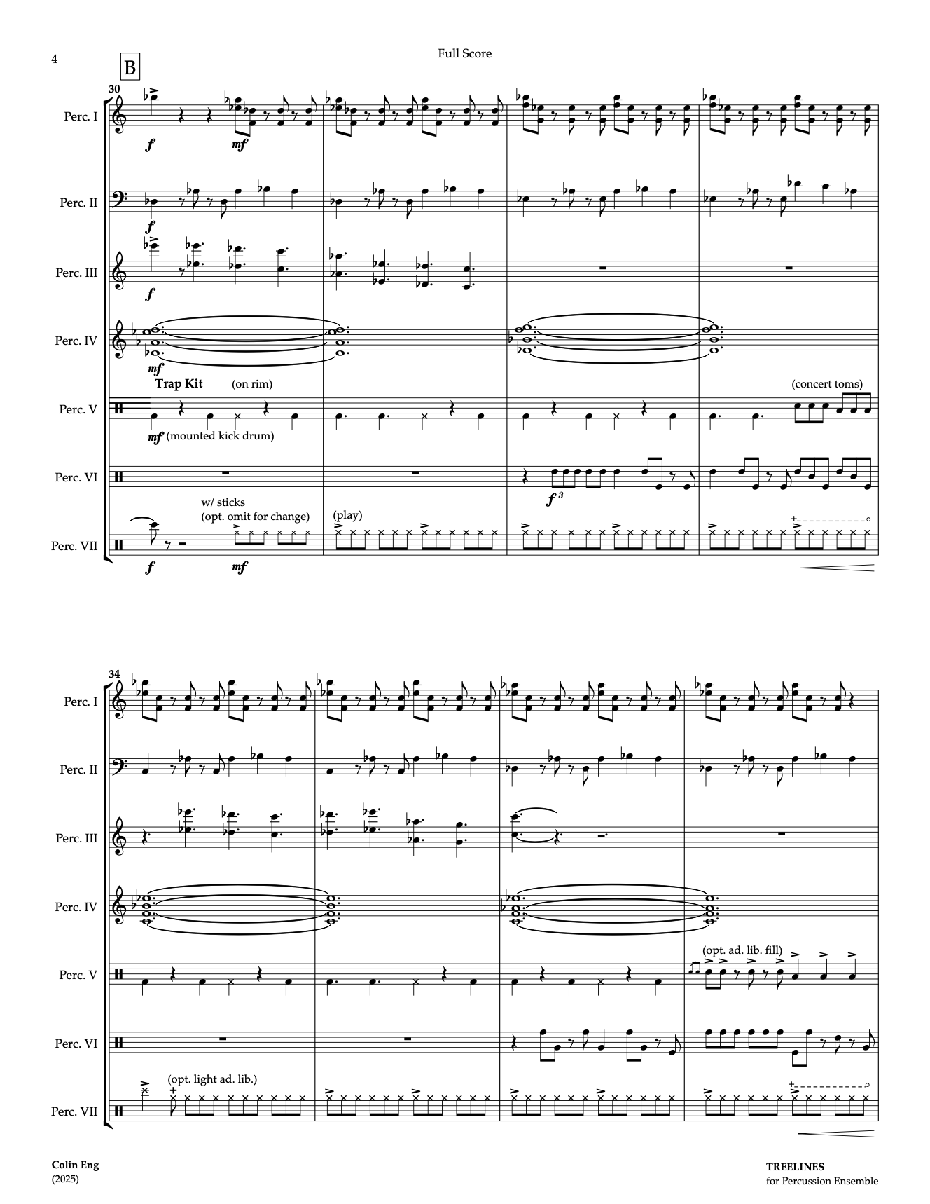 Percussion VII: China Cymbal, Hi-Hat, Splash Cymbal, Ride Cymbal, Snare Drum, Triangle